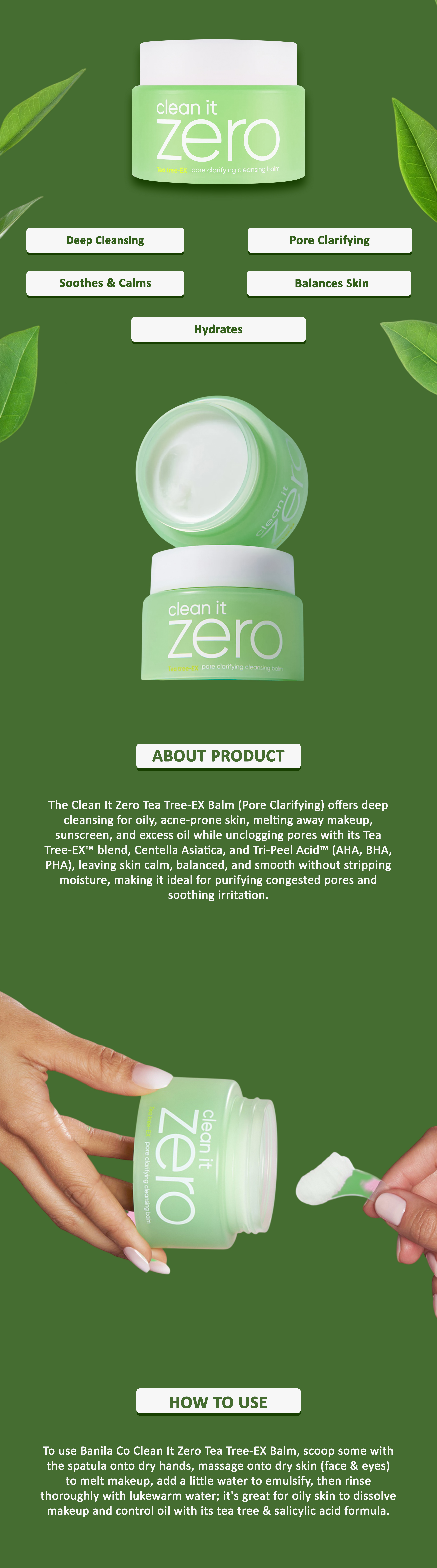BANILA CO - Clean it Zero Tea Tree-EX Pore Clarifying Cleansing Balm 100ml       Banila Co. Korea